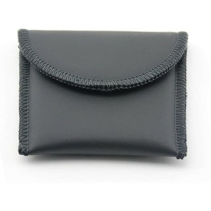 A compact black PVC pouch with a Velcro seal, perfect for carrying your hearing aids and batteries. It fits easily into your purse or pocket and can also be used to protect jewelry and small fragile items. Keeps your hearing aids safe and secure.