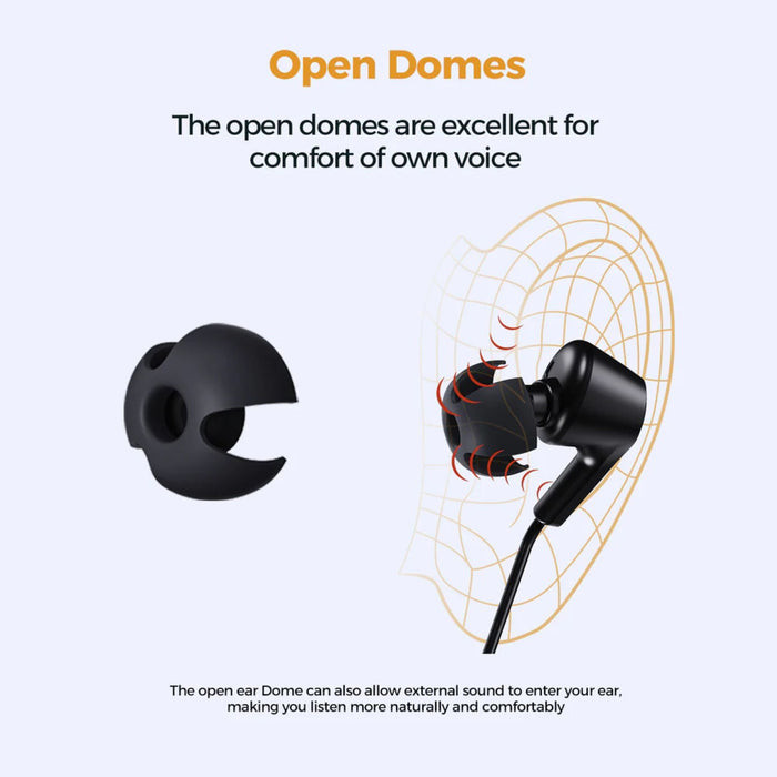 - Comfortable Fit: Open ear domes for long-lasting comfort.